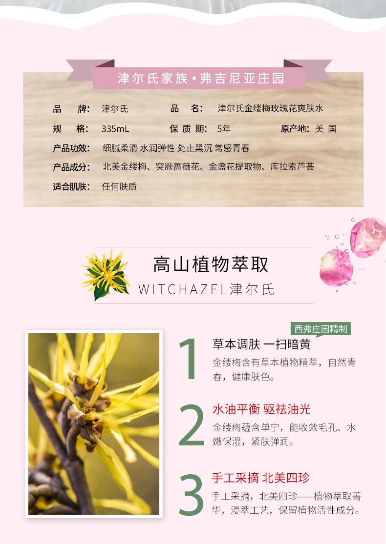 WITCHAZEL ARTISAN BEAUTY津尔氏金缕梅玫瑰花爽肤水