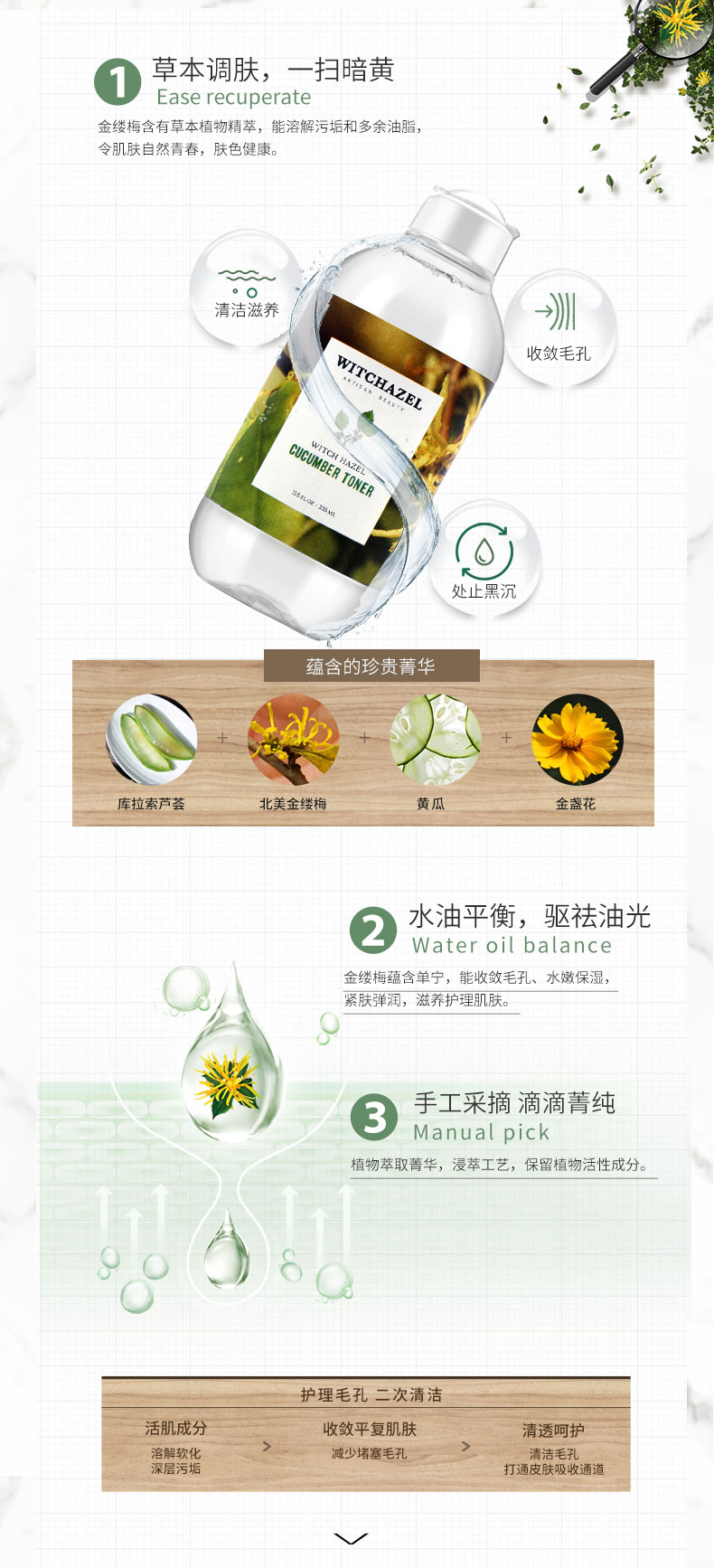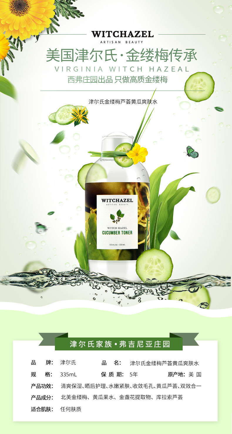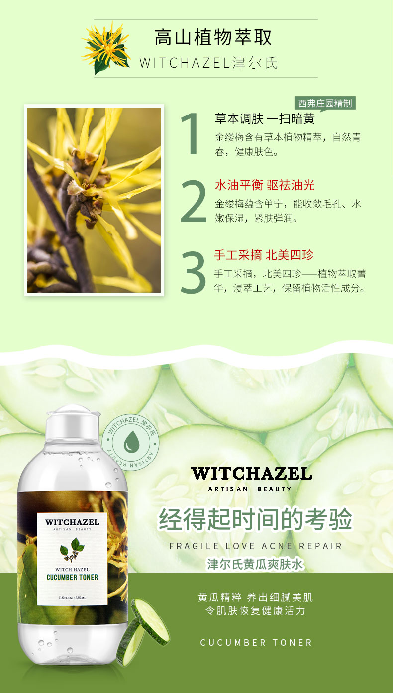 WITCHAZEL ARTISAN BEAUTY津尔氏金缕梅芦荟黄瓜爽肤水
